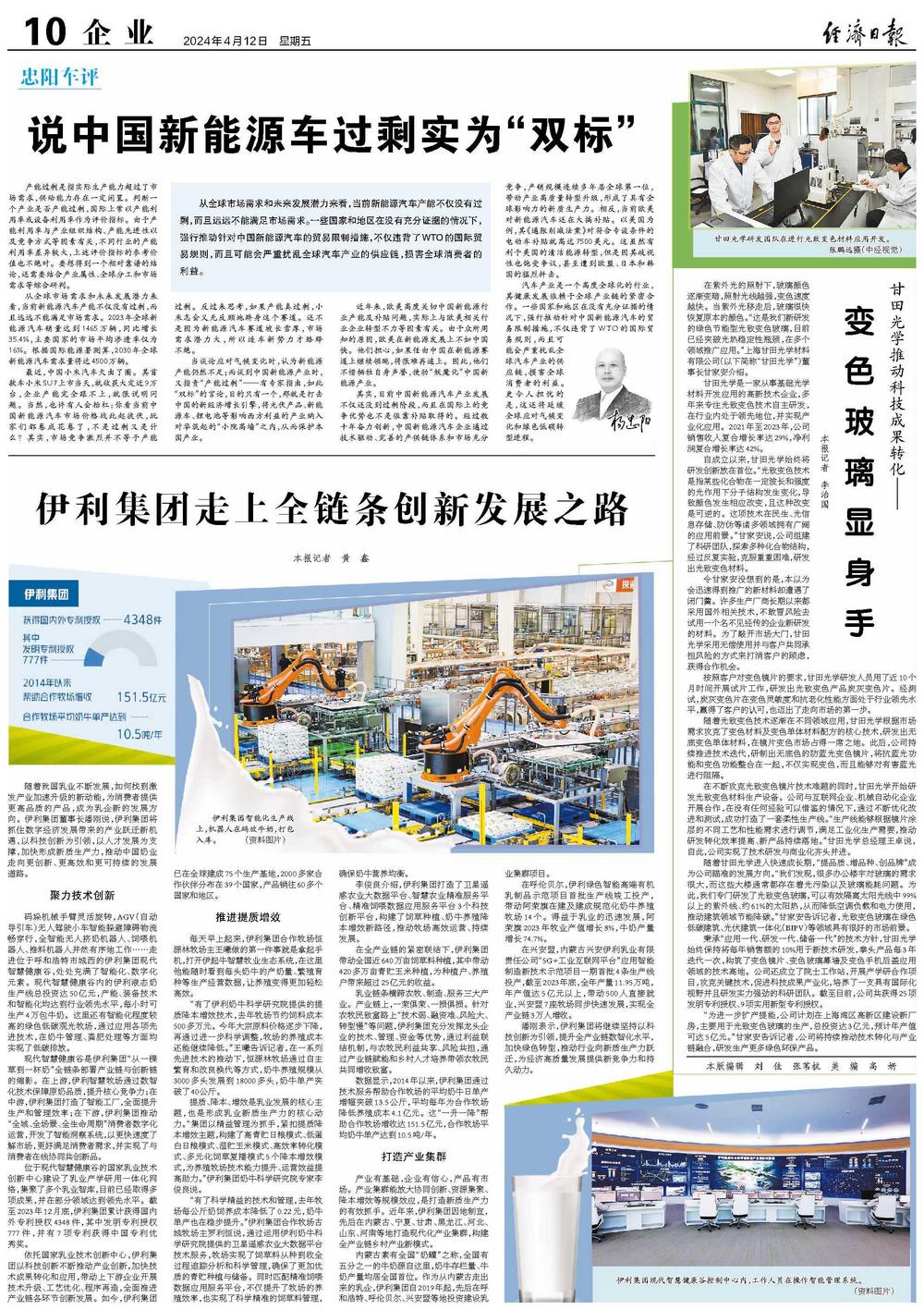 产业有基础,企业有信心,产品有市场。产业集群能放大协同创新、资源集聚、降本增效等规模效应,是打造新质生产力的有效抓手。近年来,伊利集团因地制宜,先后在内蒙古、宁夏、甘肃、黑龙江、河北、山东、河南等地打造现代化产业集群,构建全产业链乡村产业新模式。