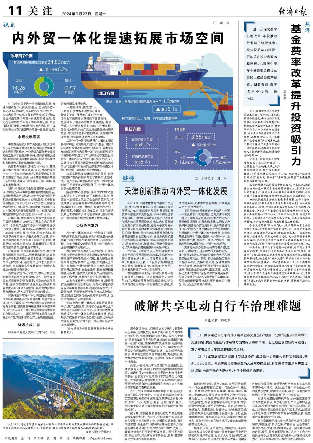 三是在传统优势继续发展的同时,包括“新三样”在内的领域开创了新的市场空间,为不同产业链、供应链的内外贸一体化发展创造了多重赛道,进而拓展了内外贸一体化实践的适用范围。