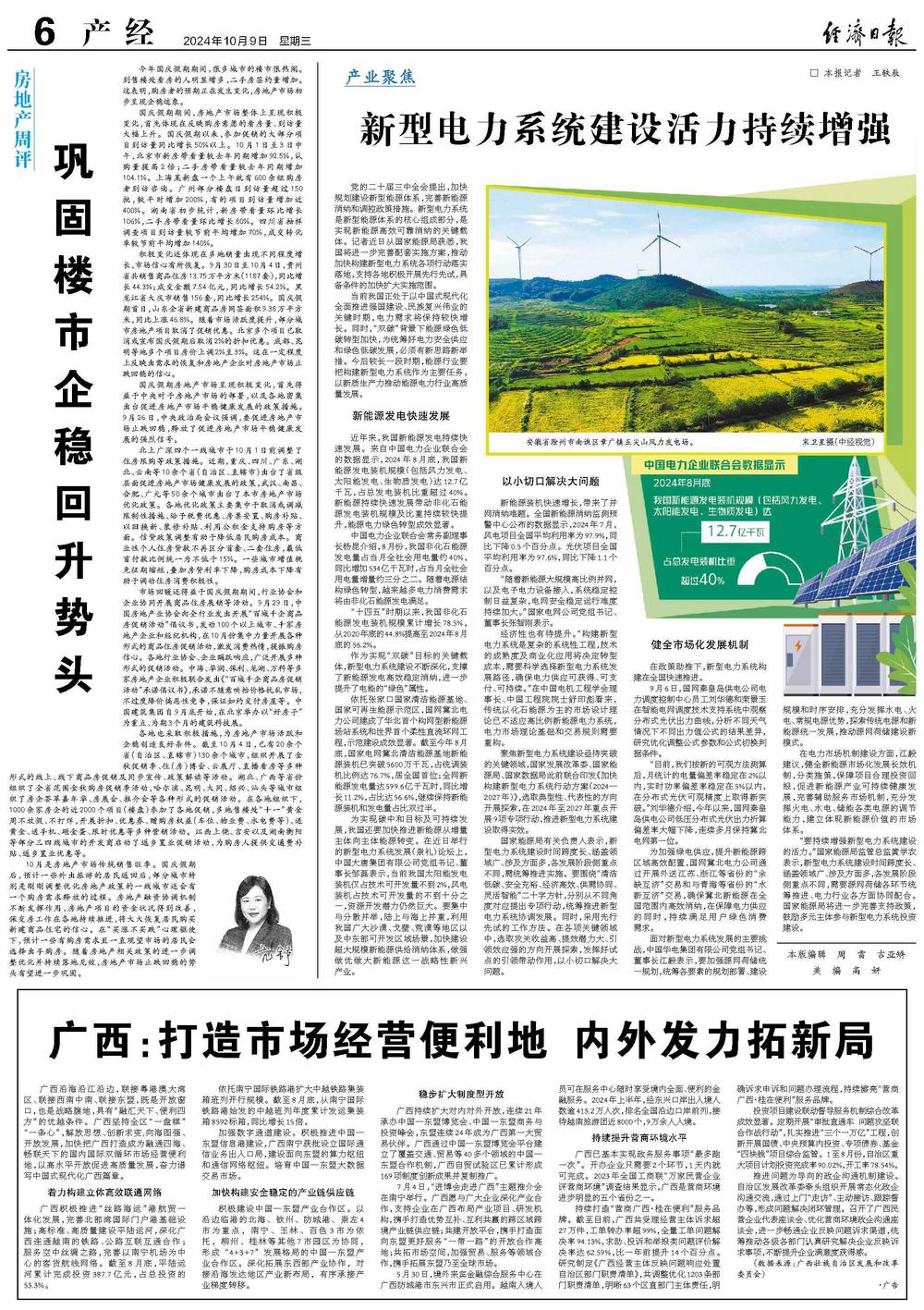 近年来,我国新能源发电持续快速发展。来自中国电力企业联合会的数据显示,2024年8月底,我国新能源发电装机规模(包括风力发电、太阳能发电、生物质发电)达12.7亿千瓦,占总发电装机比重超过40%。新能源持续快速发展带动非化石能源发电装机规模及比重持续较快提升,能源电力绿色转型成效显著。