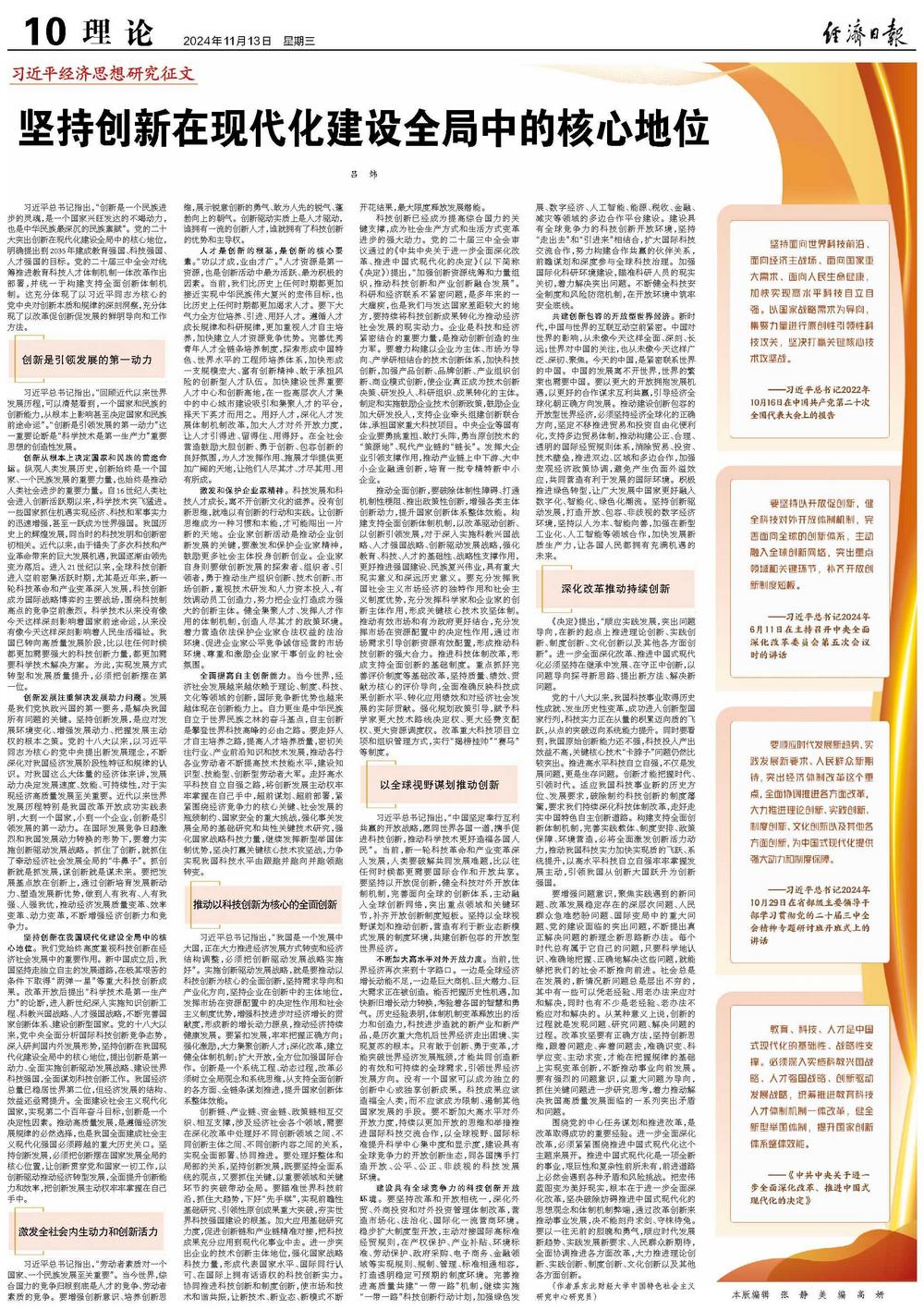 习近平总书记指出,“创新是一个民族进步的灵魂,是一个国家兴旺发达的不竭动力,也是中华民族最深沉的民族禀赋”。党的二十大突出创新在现代化建设全局中的核心地位,明确提出到2035年建成教育强国、科技强国、人才强国的目标。党的二十届三中全会对统筹推进教育科技人才体制机制一体改革作出部署,并统一于构建支持全面创新体制机制。这充分体现了以习近平同志为核心的党中央对创新本质和规律的深刻洞察,充分体现了以改革促创新促发展的鲜明导向和工作方法。