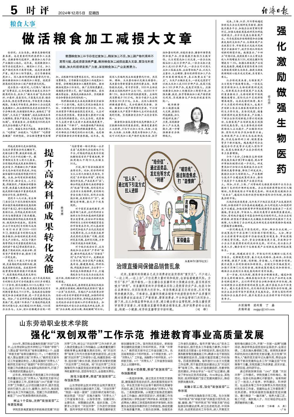 我国粮食加工环节存在过度加工、精深加工不足、加工副产物利用率不高等问题,造成资源浪费严重。做活粮食加工减损这篇大文章,要强化科技赋能,加大科技研发推广力度,深挖粮食加工产业发展潜力。