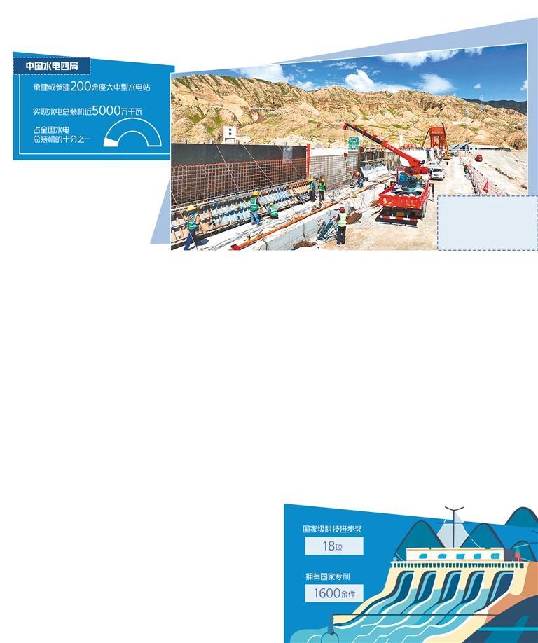 中国水电四局曾承建或参建了三峡、公伯峡、拉西瓦、小湾、金安桥、向家坝、黄登、白鹤滩等200多座大中型水电站,实现水电总装机近5000万千瓦,占到全国水电总装机的十分之一。