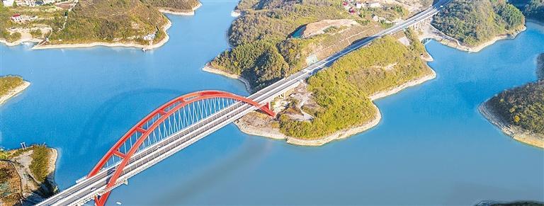 12月8日,湖南省娄底市新化县车田江水库湖水蔚蓝,桥梁、山峦相映成景。近年来,当地发挥林长制、河(湖)长制作用,生态环境持续向好。