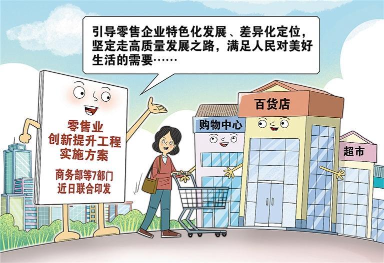 引导零售企业特色化发展、差异化定位,坚定走高质量发展之路,满足人民对美好生活的需要……商务部等7部门近日联合印发《零售业创新提升工程实施方案》。方案聚焦零售商业设施改造提升,并对试点探索作出具体安排,提出力争到2029年,初步形成供给丰富、布局均衡、渠道多元、服务优质、智慧便捷、绿色低碳的现代零售体系工作目标。零售业事关国计民生,我国零售业当前仍存在业态发展不平衡、部分设施运营低效、经营承压及优质供给不足等问题。改造软硬件设施,打造温馨舒适的消费新场景,提升商品与服务质量,为顾客提供更好的消费体验,最大程度便利居民消费,才能让居民安心消费。(时 锋)