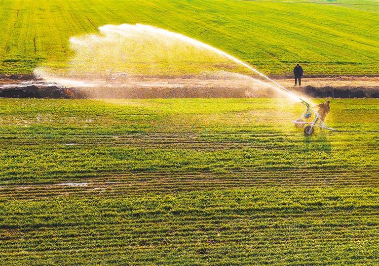 1月13日,河南省南阳市社旗县郝寨镇石桥村,村民们正进行小麦冬灌作业。眼下,小麦正处于苗期生长关键阶段,南阳市精心组织、科学调度,为保障粮食安全奠定了基础。