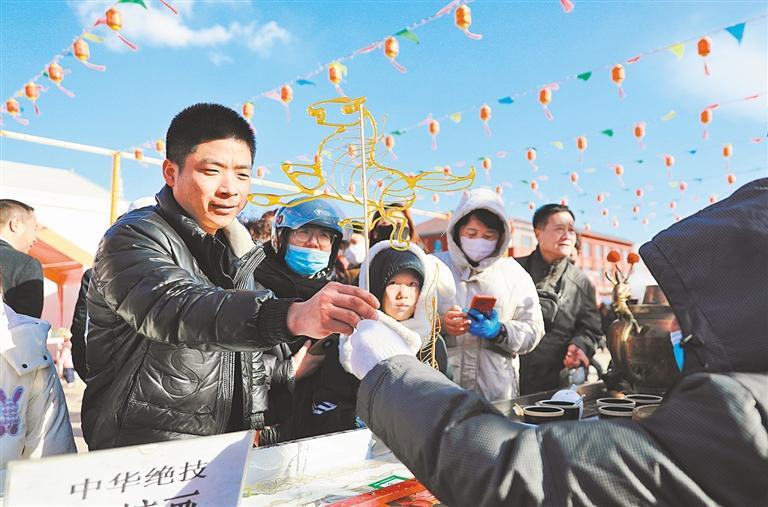 ▲1月7日,天津芦台大集,充满新年味道的糖画吸引人们驻足。芦台大集有约350年历史,是目前天津规模最大的农村大集之一。