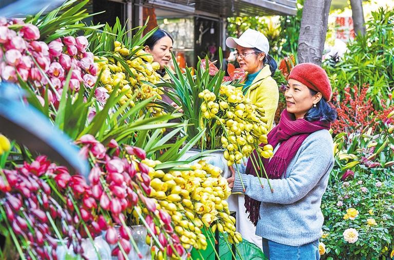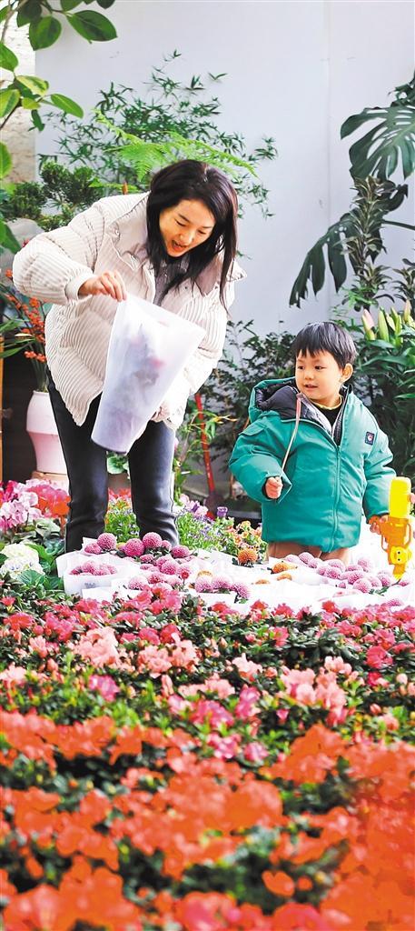 ▶1月6日,四川省乐山市市中区全福街道,市民在花卉市场选购鲜花。李华时摄