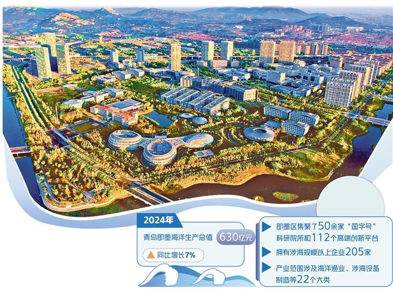 青岛市即墨区坚持“陆海统筹、全域蓝色”理念,以科技创新为引领、以项目落地为抓手、以产业转型为导向,全力推动海洋经济高质量发展,“蓝色成绩单”屡创新高,2024年,其海洋生产总值达630亿元,同比增长7%。