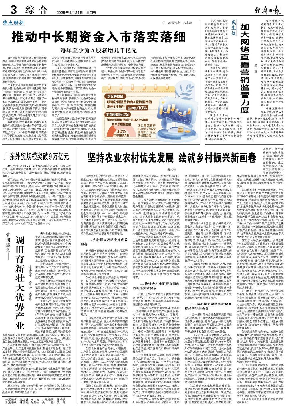 (五)城乡融合发展体制机制不断健全。城区常住人口300万以下的城市取消落户限制,以县城为重要载体的城镇化深入推进,农业转移人口市民化步伐加快。2024年,全国常住人口城镇化率达到67%。返乡入乡创业达到1300多万人,成为乡村振兴的重要力量。金融支农力度持续加大,2024年三季度末,农村、农户贷款余额分别达到36.61万亿元、18.06万亿元。城乡基础设施和公共服务一体化水平大幅提升,城乡产业协同性不断增强。