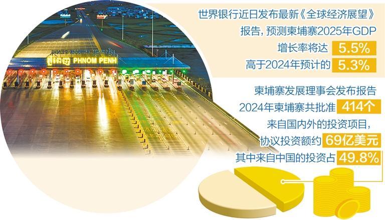 世界银行近日发布的最新《全球经济展望》报告预测,柬埔寨2025年的国内生产总值(GDP)增长率将达到5.5%,高于2024年预计的5.3%。柬埔寨仍将是东盟地区增长最快的经济体之一,其经济增速将领先于印度尼西亚、马来西亚、老挝、泰国和缅甸等国。该报告指出,强劲的国内需求将在预期内支撑柬经济增长,低通胀和强劲的劳动力市场将有助于提高柬普通家庭收入,使私人消费保持坚挺。