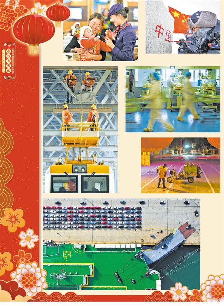 (左上)1月28日,除夕,在河南郑州东站始发的G6697次列车上,乘务人员与小朋友互动。 王 玮摄 (中经视觉)