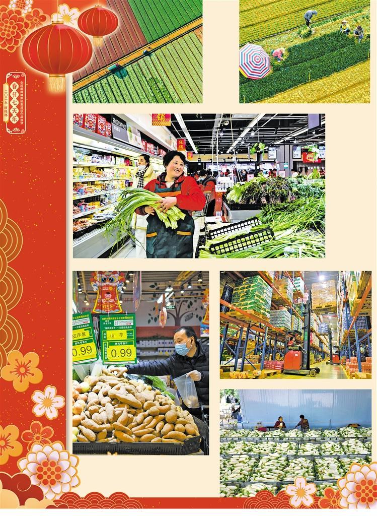 ◀1月28日,湖北省枣阳市全多友超市员工在整理蔬菜。