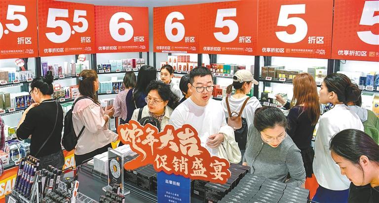 ▲2月1日,海南省海口市日月广场的海控全球精品免税城内,消费者正在选购。