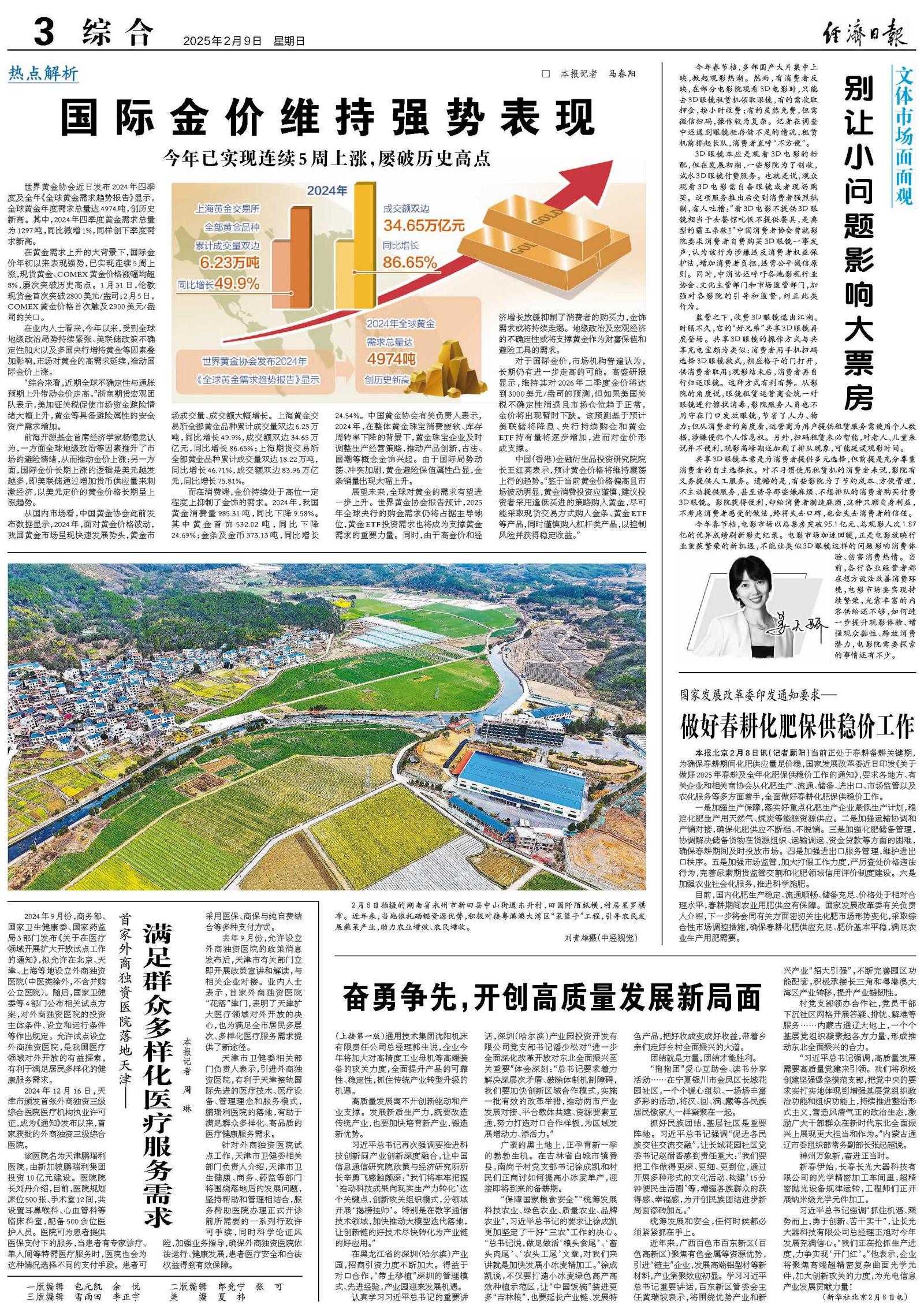 在黄金需求上升的大背景下,国际金价年初以来表现强势,已实现连续5周上涨,现货黄金、COMEX黄金价格涨幅均超8%,屡次突破历史高点。1月31日,伦敦现货金首次突破2800美元/盎司;2月5日,COMEX黄金价格首次触及2900美元/盎司的关口。