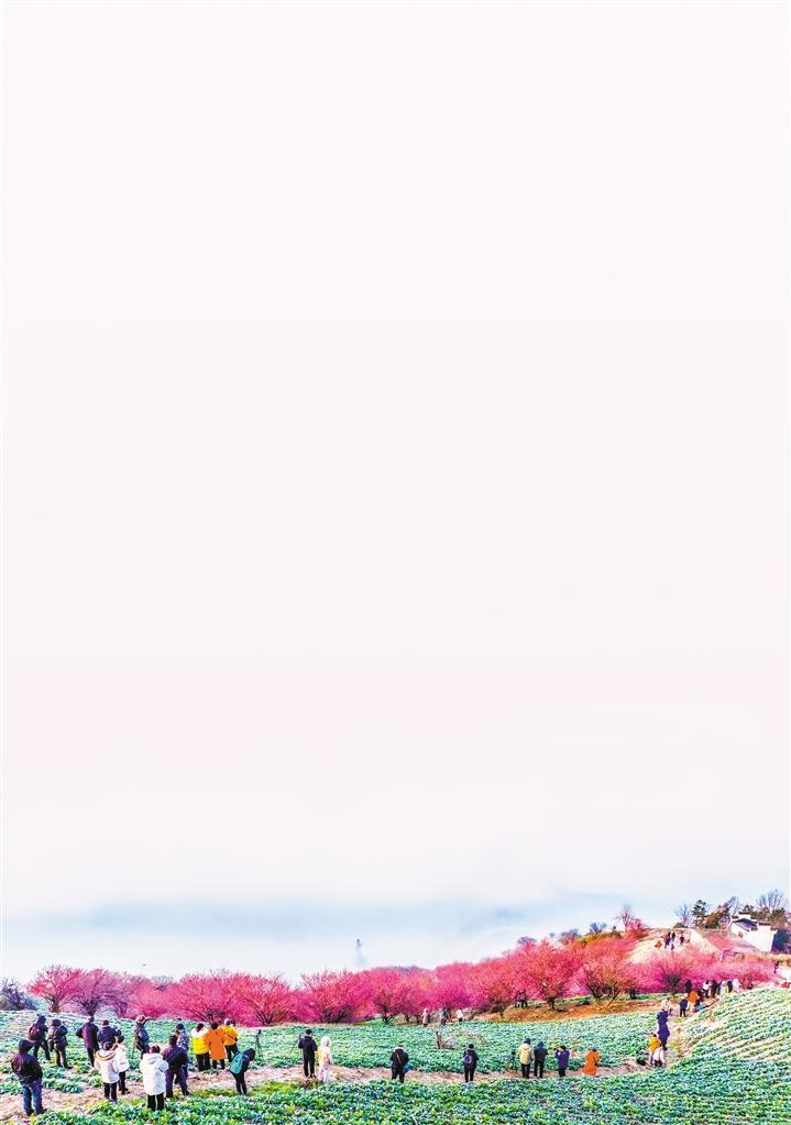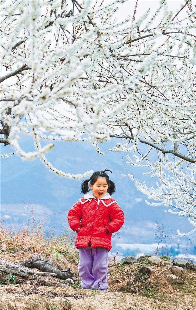 ◀2月5日,随着气温回暖,江西龙南的漫山李花竞相绽放,小朋友在花海中乐享春光。赖胜烽摄(中经视觉)