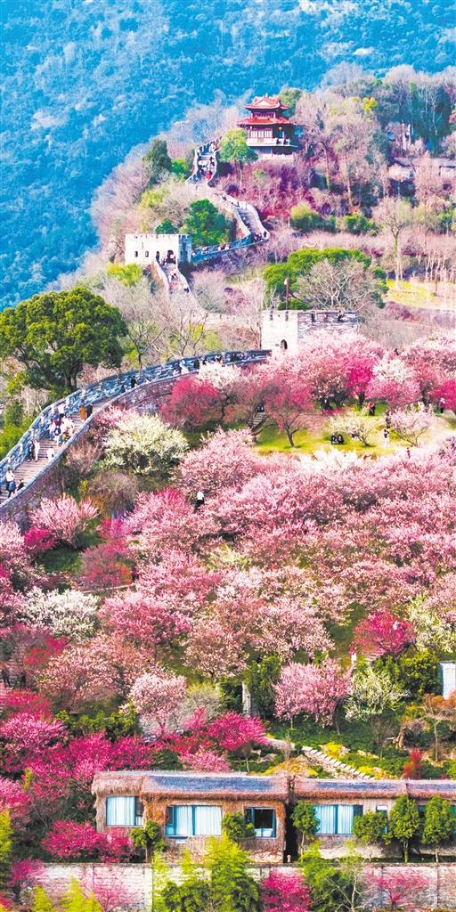 ▶2月5日,浙江临海台州府城文化旅游区梅花盛开,前来观赏的游客络绎不绝。潘侃俊摄(中经视觉)