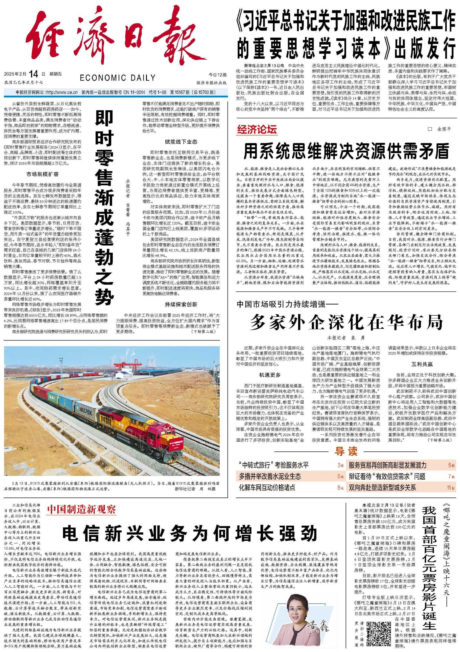 周密表示,外企投资中国是互利共赢之举。中国可以为外企研发创新和业务升级提供良好的环境。外企在技术、产品和管理等方面具有优势,新的投资项目往往集中体现了这些优势,可以为中国经济高质量发展注入动力。