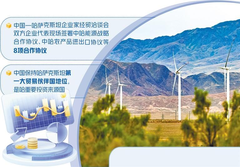 中国驻哈萨克斯坦大使韩春霖表示,建交30多年来,中哈关系取得跨越式发展,在国际上树立了睦邻友好的合作典范。近年来,两国经贸务实合作驶入“快车道”,中国保持哈第一大贸易伙伴国地位,是哈重要投资来源国。中方愿与哈方共同努力,推动两国企业扩大能矿资源贸易“基本盘”,挖掘新能源、农产品等新增长点,培育跨境电商、数字经济等新型业态,促进服务贸易发展,尽早实现两国确定的贸易额翻番目标。