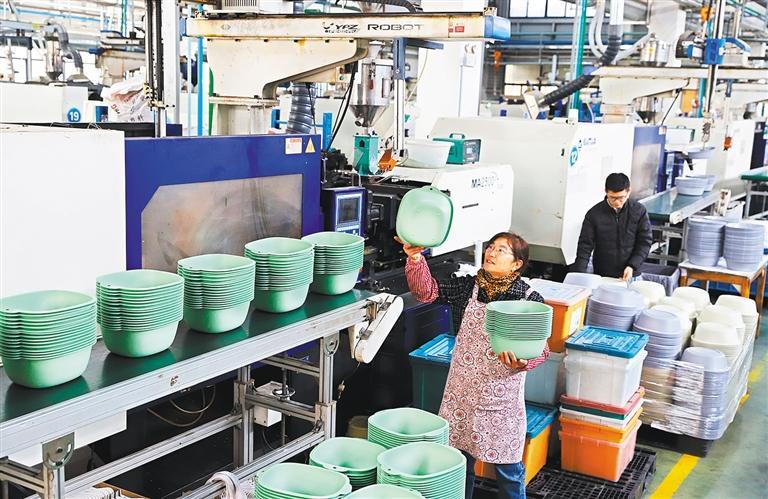 2月14日,位于浙江省台州市路桥区桐屿街道的顺禄家居用品有限公司,工人在生产线上忙碌。春节后,路桥区企业第一时间复工复产赶订单,以“首季红”确保“全年红”。