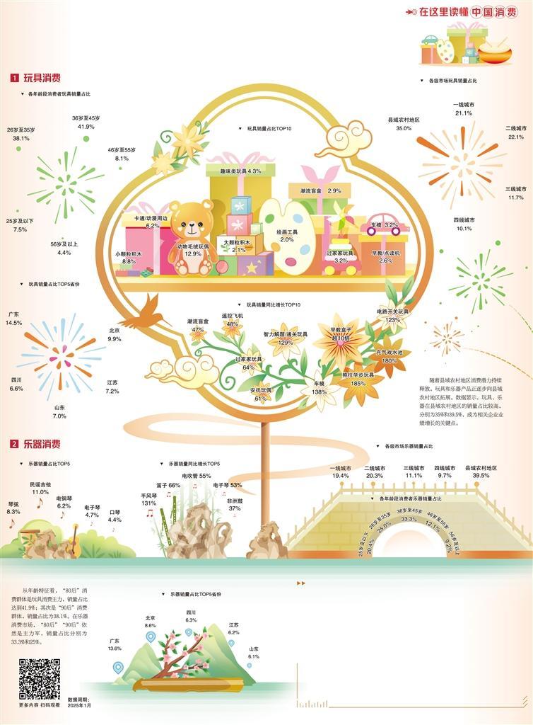 玩具乐器消费市场的发展,不仅反映出消费者在娱乐、教育、文化等领域的需求多元化,也为相关企业带来了新的机遇和挑战。玩具企业可以进一步挖掘早教类玩具和潮流IP的市场潜力,推出更多兼具趣味性和教育价值的产品;乐器企业应继续深耕便携式、智能化乐器研发,降低乐器学习门槛,吸引更多因兴趣而有消费意愿的消费者。