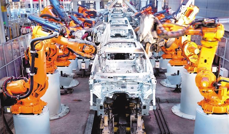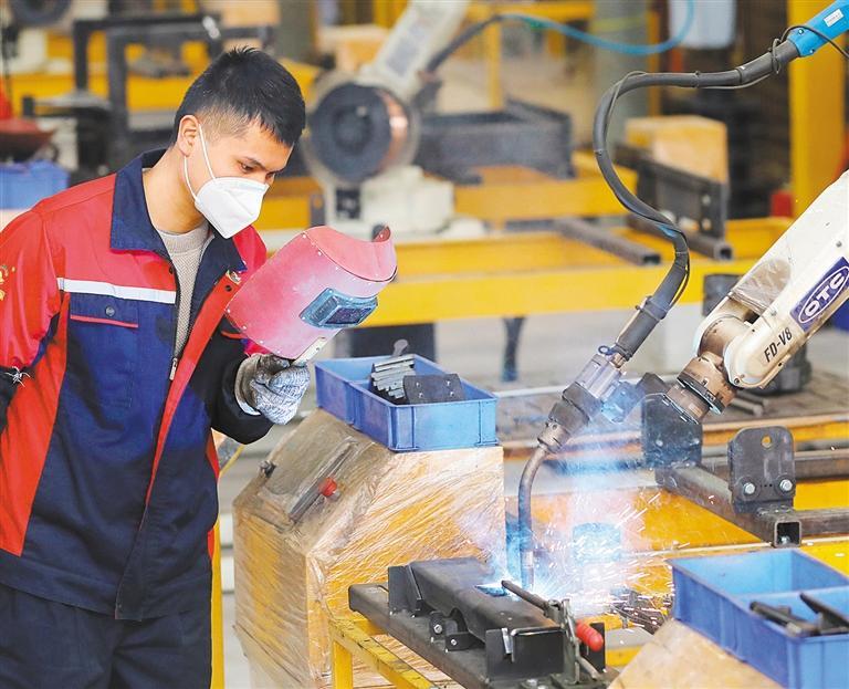 ▼2月13日,河北保定市长城汽车股份有限公司徐水分公司,智能机械臂进行焊接作业。