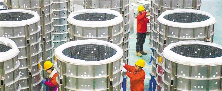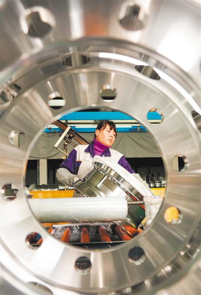 ▼2月12日,河南洛阳爱科麦钨钼科技股份有限公司,员工在加工钨钼材料真空炉。