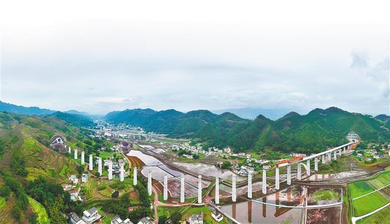 ▼2月13日,位于四川省宜宾市的渝昆高铁马鞍山特大桥在紧张建设中。