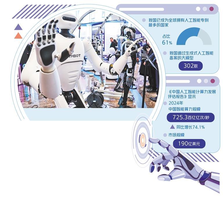 韩健介绍,在技术创新方面,我国已成为全球拥有人工智能专利最多的国家,占比高达61%;我国通过生成式人工智能备案的大模型达302款,涌现出DeepSeek等一批优秀大模型产品。要素集聚方面,智能算力基础设施加快建设,数据要素市场稳步推进。
