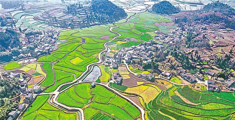 2月27日,贵州省毕节市黔西市金碧镇高标准农田里的小麦长势良好。近年来,当地依托高标准农田实施“稻麦轮作”,大力推广优质小麦规模化、标准化、产业化种植。