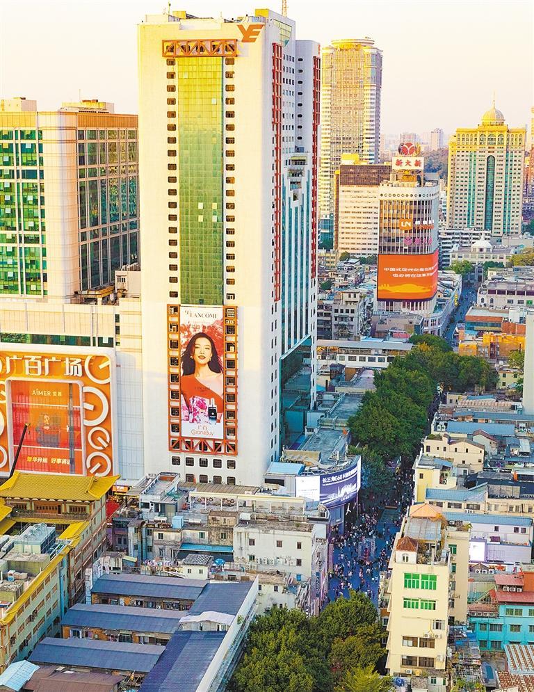 作为全国示范步行街、首批全国示范智慧商圈、国家级夜间文化和旅游消费集聚区、国家4A级旅游景区,近年来,北京路按照“一栋一策、修旧如旧”的原则,精细化修缮步行街一期376栋、二期873栋骑楼建筑,恢复“岭南特色、民国风情”历史风貌,打造“岭南建筑博物馆”。