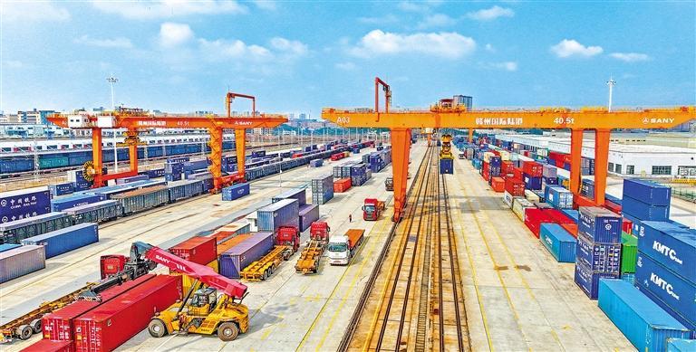 2月28日,江西省赣州市赣州国际陆港内车来车往,一派繁忙景象。赣州国际陆港是江西省首个内陆开放口岸,目前已开通了六大边境口岸的进出口通道,物流辐射欧洲、中亚及南亚的20多个国家。朱海鹏摄(中经视觉)