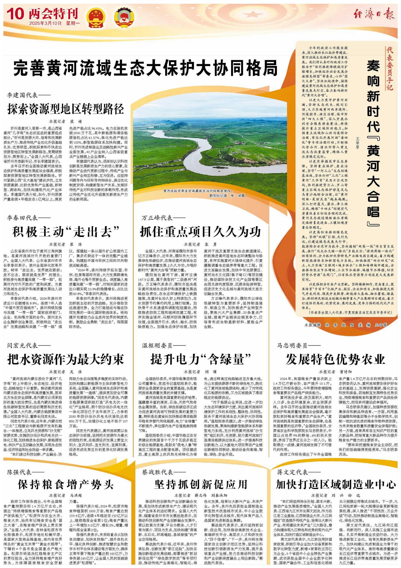 今年的政府工作报告提出,深入推动长江经济带建设、黄河流域生态保护和高质量发展。我们将认真对标政府工作报告中“协同推进降碳减污扩绿增长,加快经济社会发展全面绿色转型”等要求,心怀“国之大者”,坚决扛起使命,接续建设黄河流域生态保护和高质量发展先行区,奋力奏响新时代“黄河大合唱”。