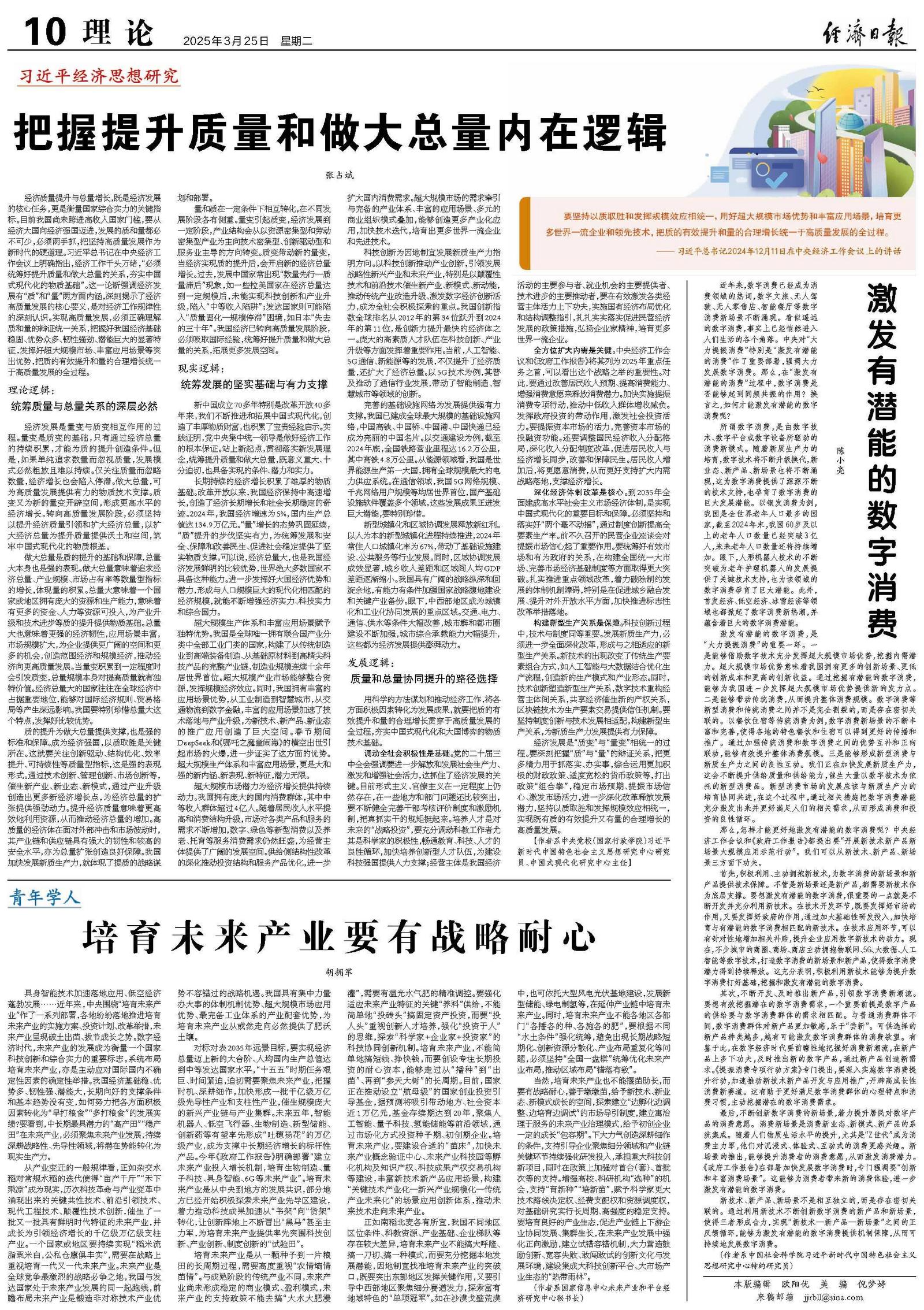 具身智能技术加速落地应用、低空经济蓬勃发展……近年来,中央围绕“培育未来产业”作了一系列部署,各地纷纷落地推进培育未来产业的实施方案、投资计划、改革举措,未来产业呈现破土出苗、拔节成长之势。数字经济时代,未来产业的发展成为衡量一个国家科技创新和综合实力的重要标志。系统布局培育未来产业,亦是主动应对国际国内不确定性因素的确定性举措。我国经济基础稳、优势多、韧性强、潜能大,长期向好的支撑条件和基本趋势没有变,如何努力把各方面积极因素转化为“早打粮食”“多打粮食”的发展实绩?要看到,中长期最具潜力的“高产田”“稳产田”在未来产业,必须聚焦未来产业发展,持续深耕战略性、先导性领域,将潜在势能转化为现实生产力。