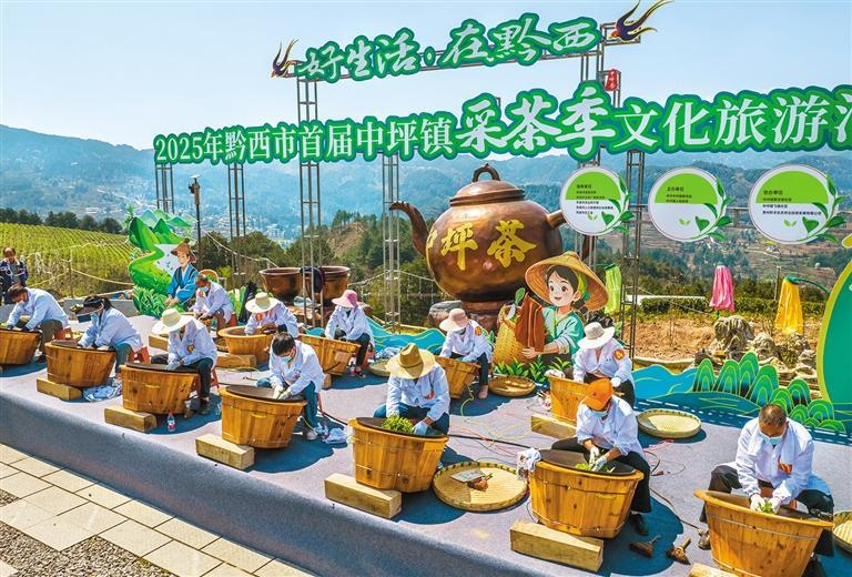▼3月25日,贵州黔西市中坪镇黄泥坡社区茶园广场,茶农开展手工制茶比赛。