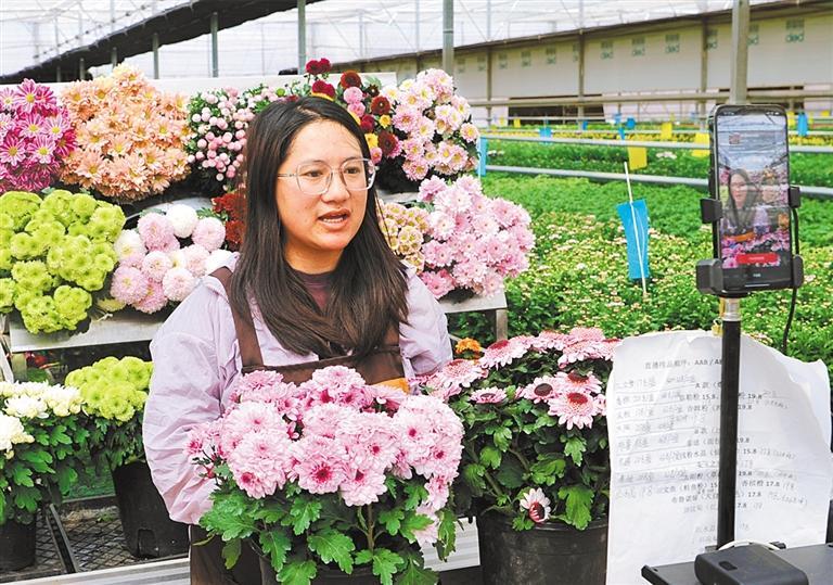 ▲2月7日,员工在楚雄州姚安县云秀花卉基地直播销售鲜花。近年来,该县加快花卉新品种自主培育,年产鲜切花10亿枝,综合产值18亿元,带动6.4万群众增收。