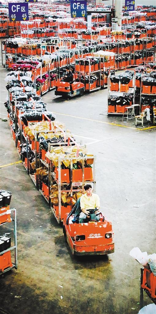 ◀3月17日,台车在昆明国际花卉拍卖交易中心运送鲜花。来自云南不同产区的鲜切花,通过紧张激烈的拍卖交易,由此走向全国及世界各地。