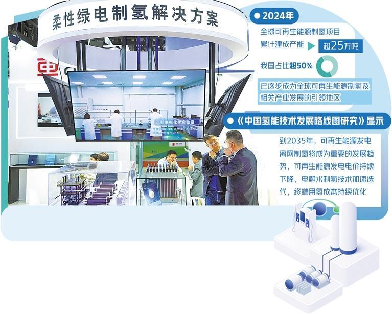 国家能源局能源节约和科技装备司副司长边广琦介绍,目前,我国在氢能产业“制储输用”各环节均呈现积极发展态势,新疆库车、宁夏宁东一批规模化可再生能源制氢项目建成,贯通可再生氢制取—储运—应用全流程,发挥了较好的示范作用。2024年,全球可再生能源制氢项目累计建成产能超25万吨,我国占比超50%,已逐步成为全球可再生能源制氢及相关产业发展的引领地区。
