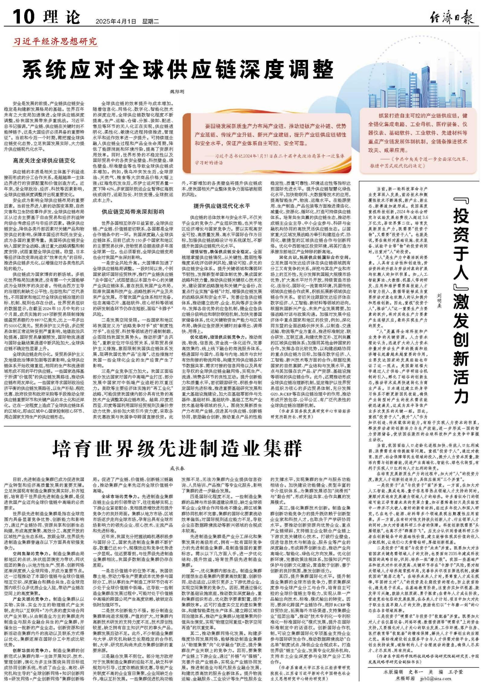 当前,新一轮科技革命与产业变革深入发展,前沿技术和颠覆性技术不断涌现,新产业、新业态、新赛道加速形成。我国高度重视科技创新,2024年全社会研究与试验发展经费投入超过3.6万亿元,居世界第二位。培育发展新质生产力,既需要“投资于物”,又需要“投资于人”。也就是说,要在做好对基础设施、技术装备、试验平台等“物”的投资的同时,注重对“人”的投资。