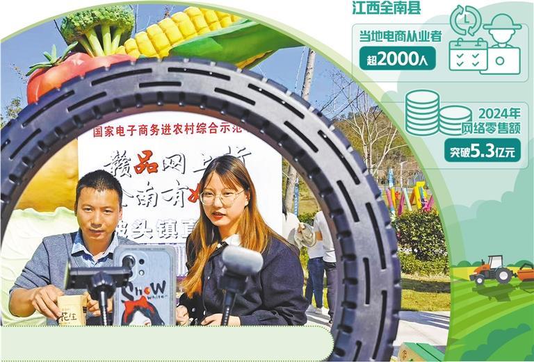 据统计,目前全南当地电商从业者超2000人,2024年网络零售额突破5.3亿元。
