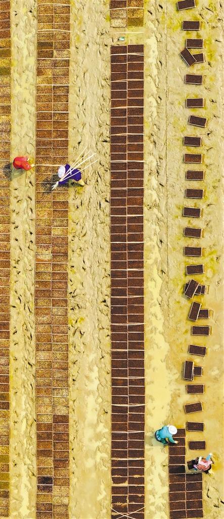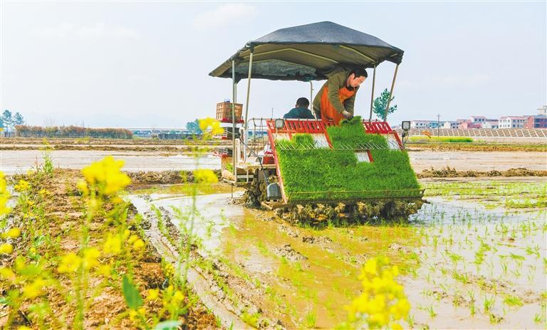 ▲3月27日,江西省宜春市上高县新界埠镇五星村锦宏合作社秧田,农户对新培育的订单秧盘进行摆放、覆膜。邹利强摄(中经视觉)