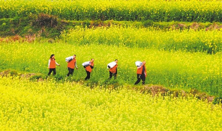▼4月1日,四川省达州市大竹县东柳街道汇合村,党员志愿者为留守老人家庭搬运化肥。