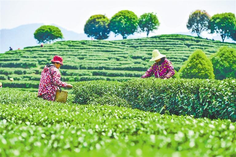 近期,江西省樟树市店下镇官塘村天心茶园的2000余亩富硒有机茶进入采摘期,茶农抓紧采摘春茶,供应市场。近年来,当地依托良好的资源禀赋,把生态优势转化为产业优势,推动农业产业化发展,促进农民增收。周 亮摄(中经视觉)