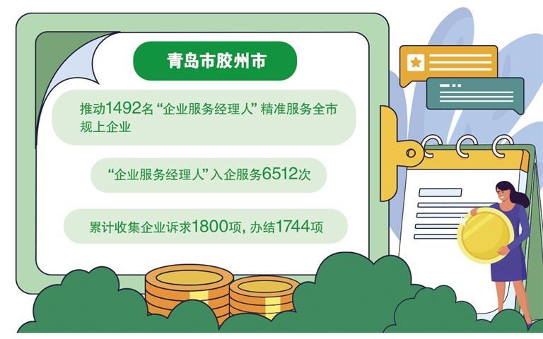 胶州市通过建立“企业服务经理人”机制,及时协调解决民营企业的实际困难,着力化解难点堵点。他们集中开展了“访千企解难题”活动,推动1492名“企业服务经理人”精准服务全市规上企业,“企业服务经理人”入企服务6512次,累计收集企业诉求1800项,办结1744项。