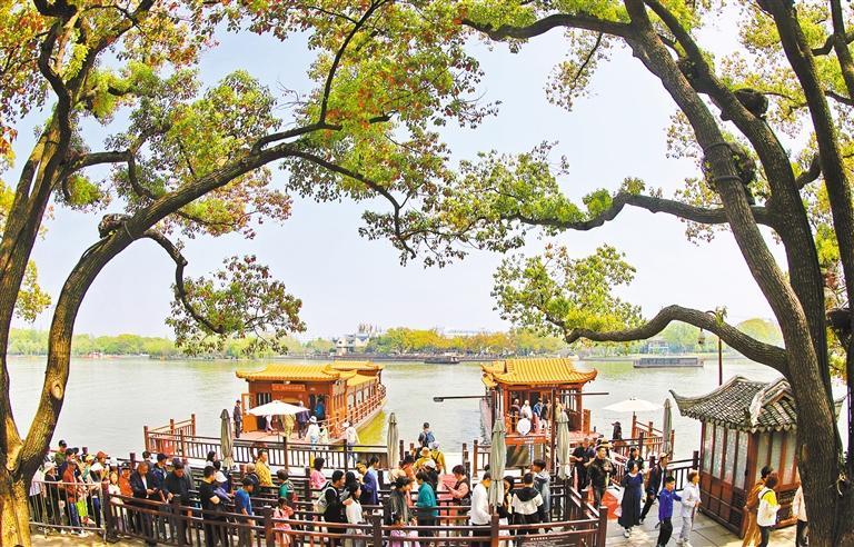 ◀4月6日,浙江省嘉兴市南湖景区游人如织。清明假期,红色旅游目的地备受追捧。
