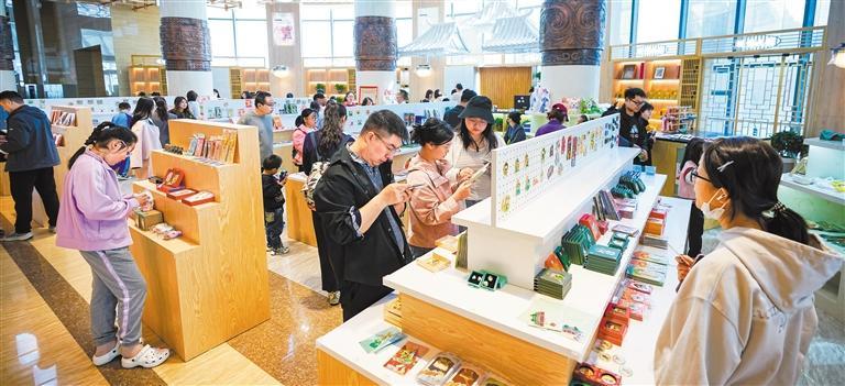 ▲4月6日,山西省运城博物馆,游客在选购琳琅满目的文创产品。