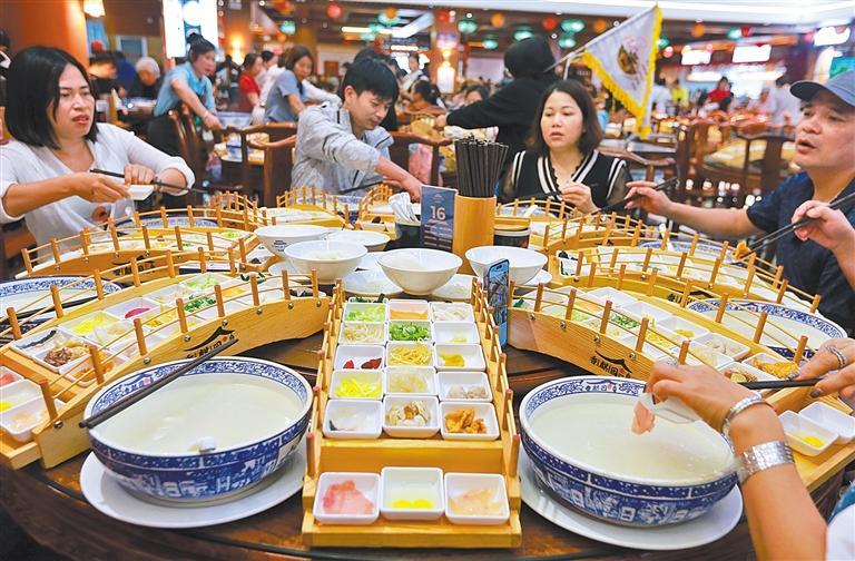 ▲4月6日,越南游客在云南省蒙自市一家过桥米线店品尝当地特色美食。
