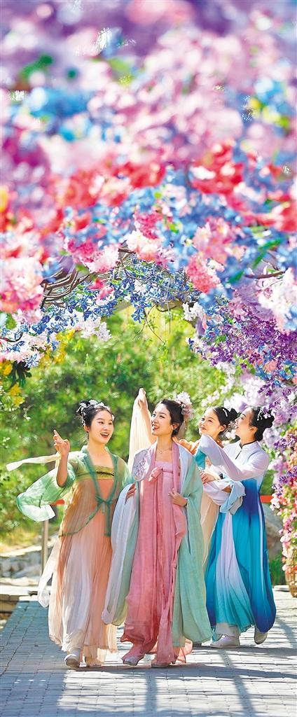 ▶4月6日,游客在山东省临沂市郯城县醉东风乡村艺栈游玩。