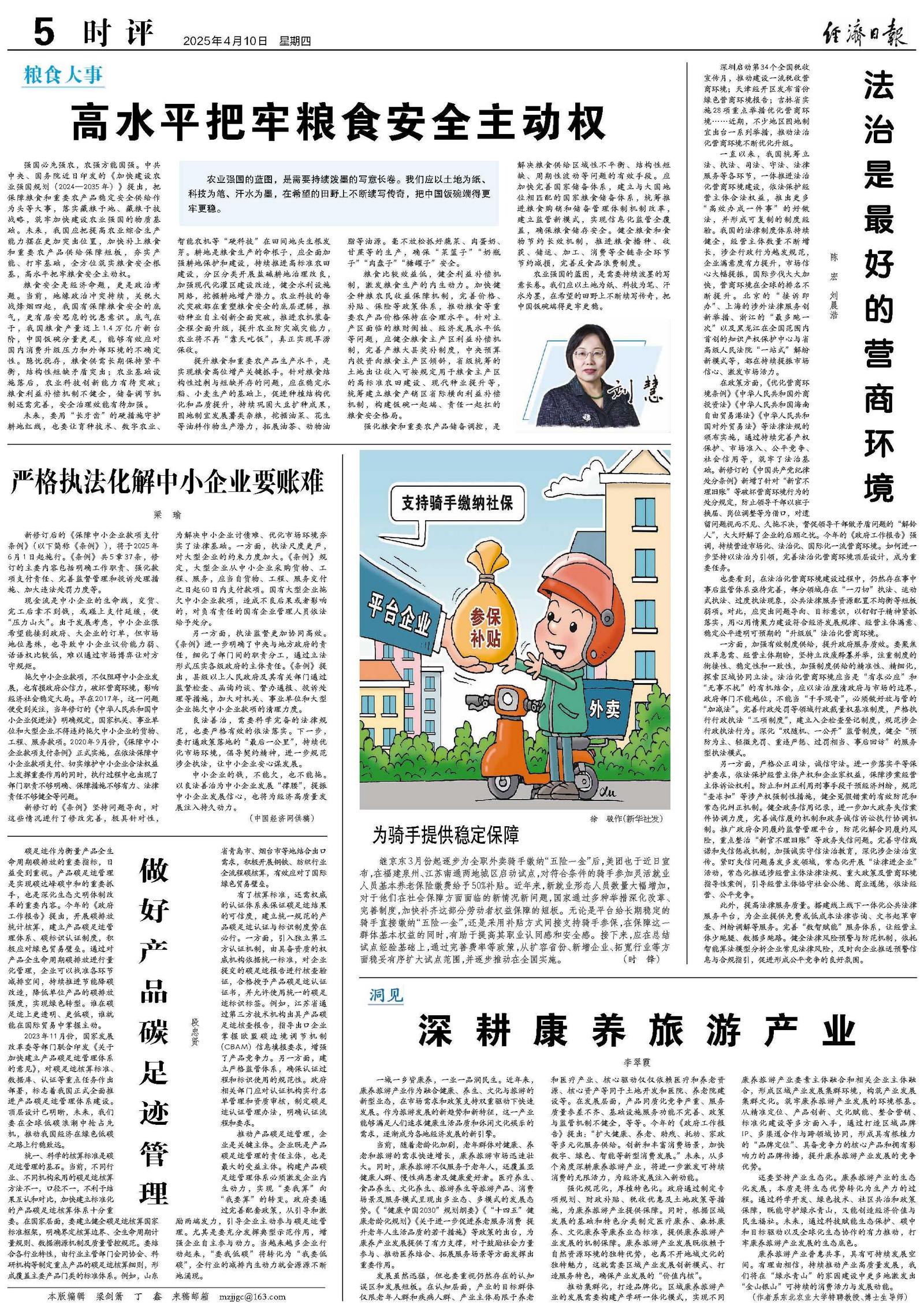 还要坚持产业生态化。康养旅游产业的生态化发展,本质是将生态优势转化为生产力的过程。通过科学开发、绿色技术、社区共治和政策保障,既能守护绿水青山,又能创造经济价值与民生福祉。未来,通过科技赋能生态保护、碳中和目标驱动以及全球化生态协作的有力推动,打牢康养旅游产业发展的生态底色。