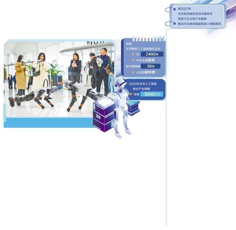 当前,以人工智能为代表的新一轮科技革命和产业变革正在重构全球创新版图。目前,北京拥有人工智能相关企业约2400家,约占全国的四成,其中独角兽企业36家,占全国超半数,2024年全年人工智能核心产业规模突破3000亿元。