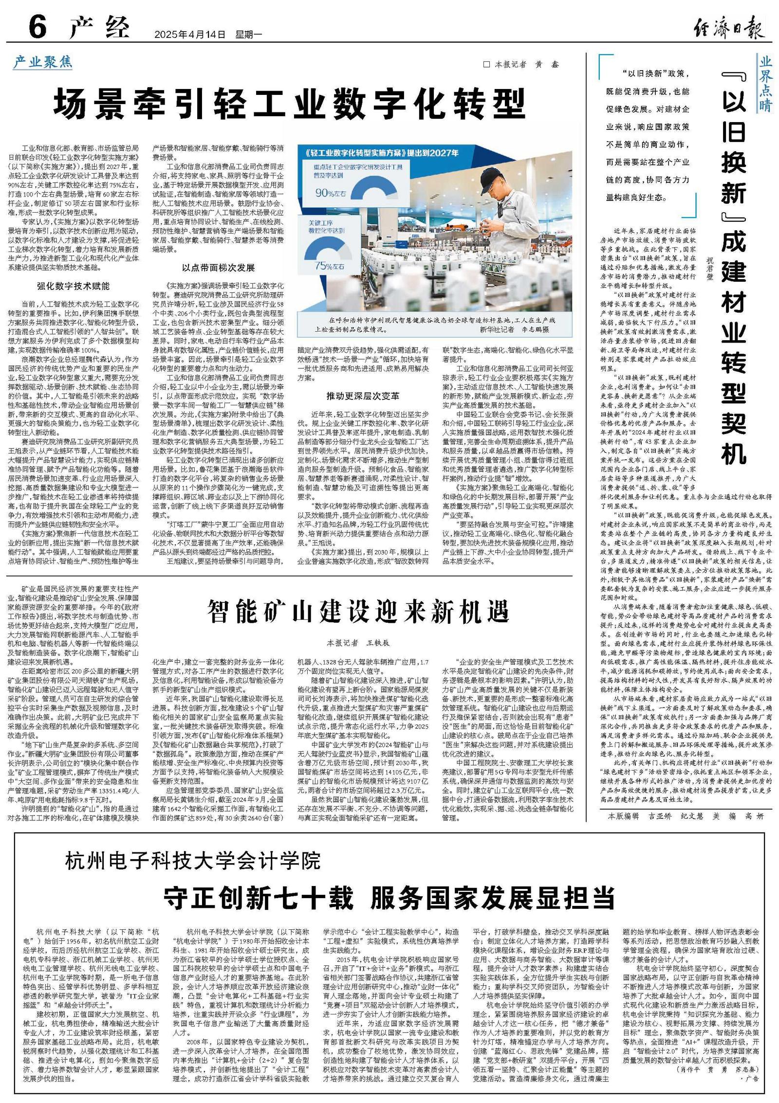 “要坚持融合发展与安全可控。”许靖建议,推动轻工业高端化、绿色化、智能化融合转型,要加快先进技术装备规模化应用,推动产业链上下游、大中小企业协同转型,提升产品本质安全水平。